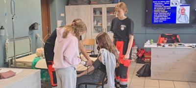 Pierwszy cykl zajęć poświęcony był udzielaniu pierwszej pomocy. Uczniowie poznali podstawowe zasady reagowania w nagłych wypadkach, w tym analizę bezpieczeństwa miejsca zdarzenia, ocenę stanu poszkodowanego, wzywanie pomocy oraz wykonywanie resuscytacji krążeniowo-oddechowej. Warsztaty miały formę praktycznych ćwiczeń, dzięki czemu każdy